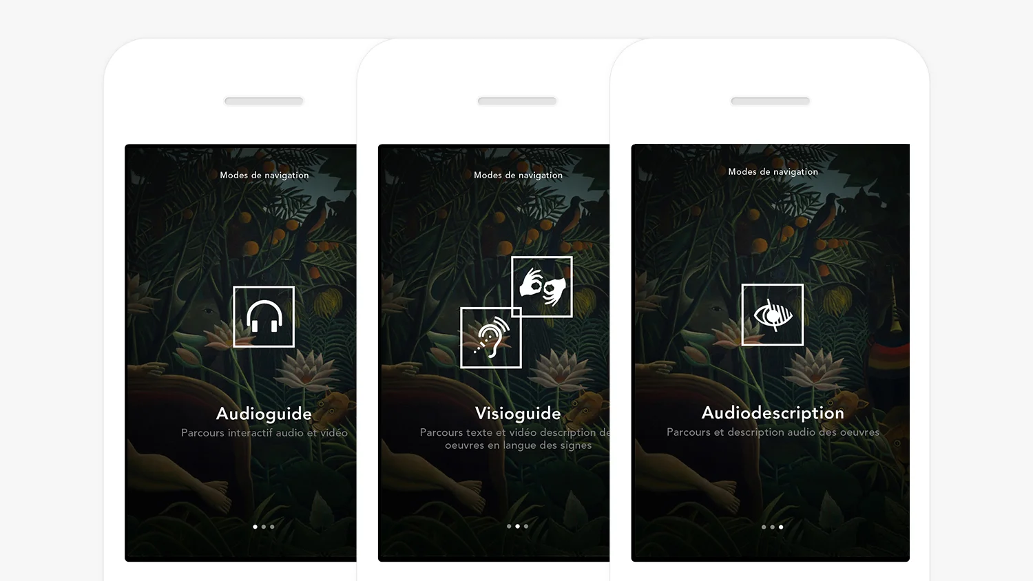 The app proposes new ways of interacting for all visitors. Exploring modes are available for Deaf/Hard of hearing and Blind/Partially Sighted individuals.